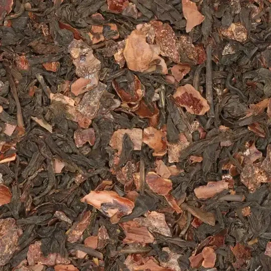 gerookte zwarte thee*, cacaodoppen*