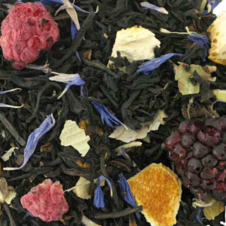 zwarte thee, citrusschil, natuurlijk bessenaroma, korenbloembloesem, bramenblad, aroma, stukjes framboos, bramen, natuurlijk aroma.